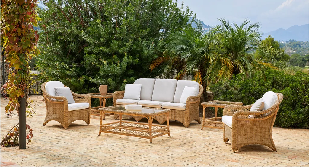 Traditionelles Flechthandwerk und moderne Materialien sorgen für einzigartige Gartenmöbel, die durch ihre Exklusivität und Funktionalität begeistern. Die Sofas der Kollektion „Arena“ haben eine robuste Karkasse, sind witterungsbeständig und pflegeleicht.