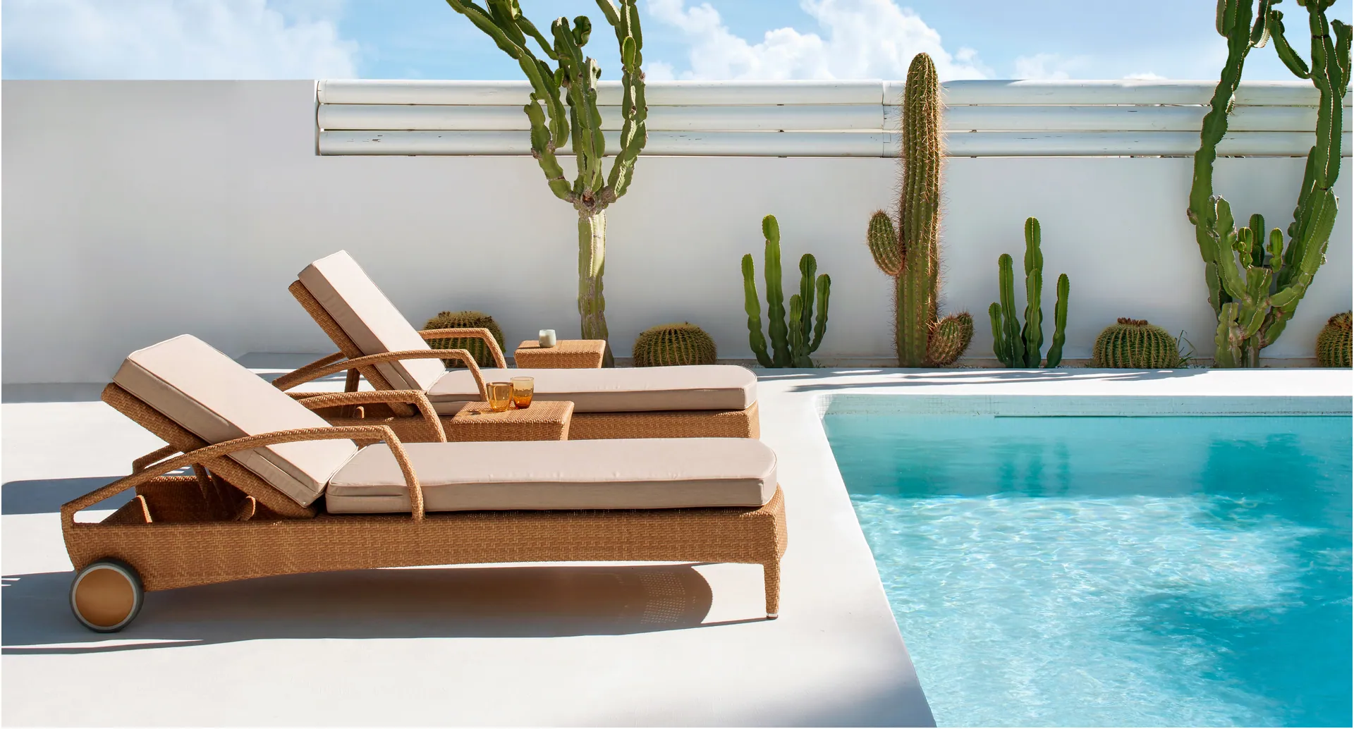 Das Hauptmerkmal dieser aus einer Liege und einem Beistelltisch bestehenden Kollektion sind die leicht abgerundeten Linien und ein spezielles Gewebe, das mit Shintotex, einer von POINT entwickelten recycelbaren Faser, eine besondere, ineinander verschlungene Textur erzeugt. Die Liege ist mit Rollen ausgestattet, um das Bewegen zu erleichtern. Die Ästhetik dieser Kollektion erinnert an nordisches Design, betrachtet durch einen mediterranen Filter.