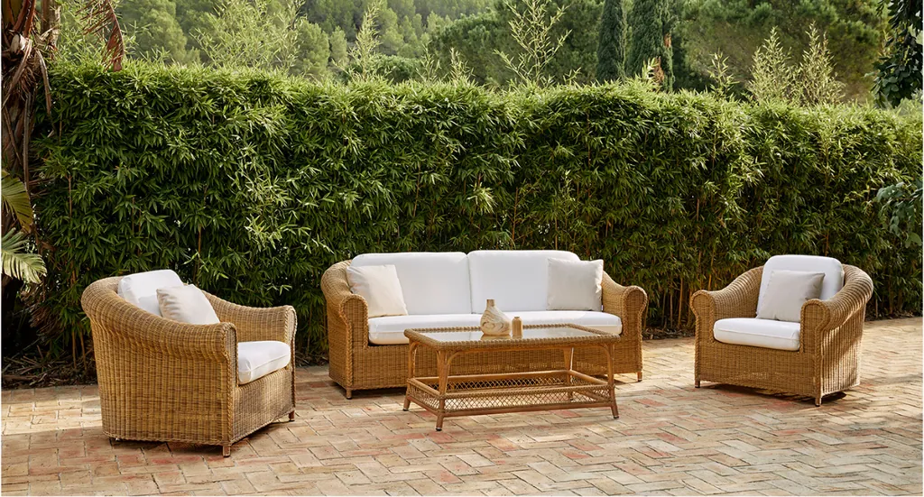 Traditionelles Flechthandwerk und moderne Materialien sorgen für einzigartige Gartenmöbel, die durch ihre Exklusivität und Funktionalität begeistern. Die Sofas der Kollektion „Brumas“ haben eine robuste Karkasse, sind witterungsbeständig und pflegeleicht.