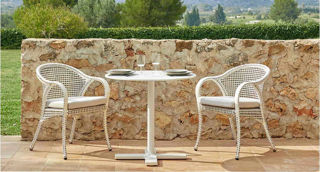 Das Detail, das ihm seine Persönlichkeit verleiht, ist auch der Garant für seine Stabilität und Stärke: zwei symmetrische Klingen, die sich an der Basis kreuzförmig treffen. Die Tischgestelle von Colours sind so konzipiert, dass sie mit den verschiedenen Tischplatten kombiniert werden können, die im POINT-Katalog erhältlich sind. Sie bestehen aus epoxidlackiertem Aluminium, das äußerst witterungsbeständig ist und in einer Vielzahl von Farben erhältlich ist, von Creme und Röstung bis hin zu Himmelblau, Terrakotta, Grau, Rost und Sand. Seine minimalistische Silhouette macht ihn einzigartig und lässt sich leicht in jede Umgebung integrieren.
