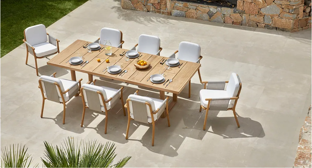 „Komm, lass uns in die Hamptons fahren!“ Ein Satz, den man in amerikanischen Filmen öfter mal hört. In malerischer Landschaft verbringen gut betuchte New Yorker dort gern ihre freie Zeit. Ein exklusives Strandhaus reiht sich an das nächste. Wir können nicht mit Gewissheit sagen, ob Francesc Rifé an diesen besonderen Landstrich dachte, als er Hamp für Point designte. Sicher ist aber, dass diese Kollektion an so einem noblen Ort eine hervorragende Figur machen würde. Entdecken Sie Hamp hier bei der Villa Schmidt für sich und für Ihren Garten. Mit diesen geschmackvollen Kreationen setzen Sie ganz einfach außergewöhnliche Akzente in Ihrem Zuhause. Dafür sorgt das kreative Können des mehrfach ausgezeichneten spanischen Designers. Hamp bietet Ihnen vielfältige Möglichkeiten. Sie möchten ganz und gar entspannen? Dann sollten Sie einen Blick auf Loungesofa und Loungesessel werfen. Lassen Sie sich entspannt herabsinken und genießen Sie die Sonne – dazu ein gutes Buch oder ein kühles Getränk. Die perfekte Ablage dafür ist der Hamp Kaffeetisch. Sie freuen sich im Sommer auf das Essen unter freiem Himmel? Dann ist der Gartenstuhl Ihr idealer Begleiter. Kombinieren Sie diesen mit einem der Gartentische. Ob rund, quadratisch oder rechteckig: Hier ist für jeden Wunsch das Passende dabei. Der beeindruckende Look der Hamp Kollektion ist stark durch Teakholz geprägt. Besonders im Zusammenspiel mit einer natürlichen Umgebung entfaltet das erstklassige Material seinen ganzen Charme. Die wunderbare Maserung tut dabei ihr Übriges. Entscheiden Sie sich hier bei der Villa Schmidt für eine gewohnt hochwertige und geschmackvolle Point Kollektion. Für Kreationen, die genau so schön sind wie eine Fahrt in die Hamptons. Traditionelles Flechthandwerk und moderne Materialien sorgen für einzigartige Gartenmöbel, die durch ihre Exklusivität und Funktionalität begeistern. Die Möbel der Kollektion Hamp haben ein robustes Teakholzgestell kombiniert mit einem wetterfesten Polster, sind witterungsbeständig und pflegeleicht. Hamp • Designer Francesc Rifé Throughout his career Rifé has received many prizes in the field of design, like ContractWorld Awards, ICFF Editors Awards, Ascer Prizes, and FAD Awards. Also, he has been nominated for the National Design Awards and the Delta Awards for Industrial Design. -->