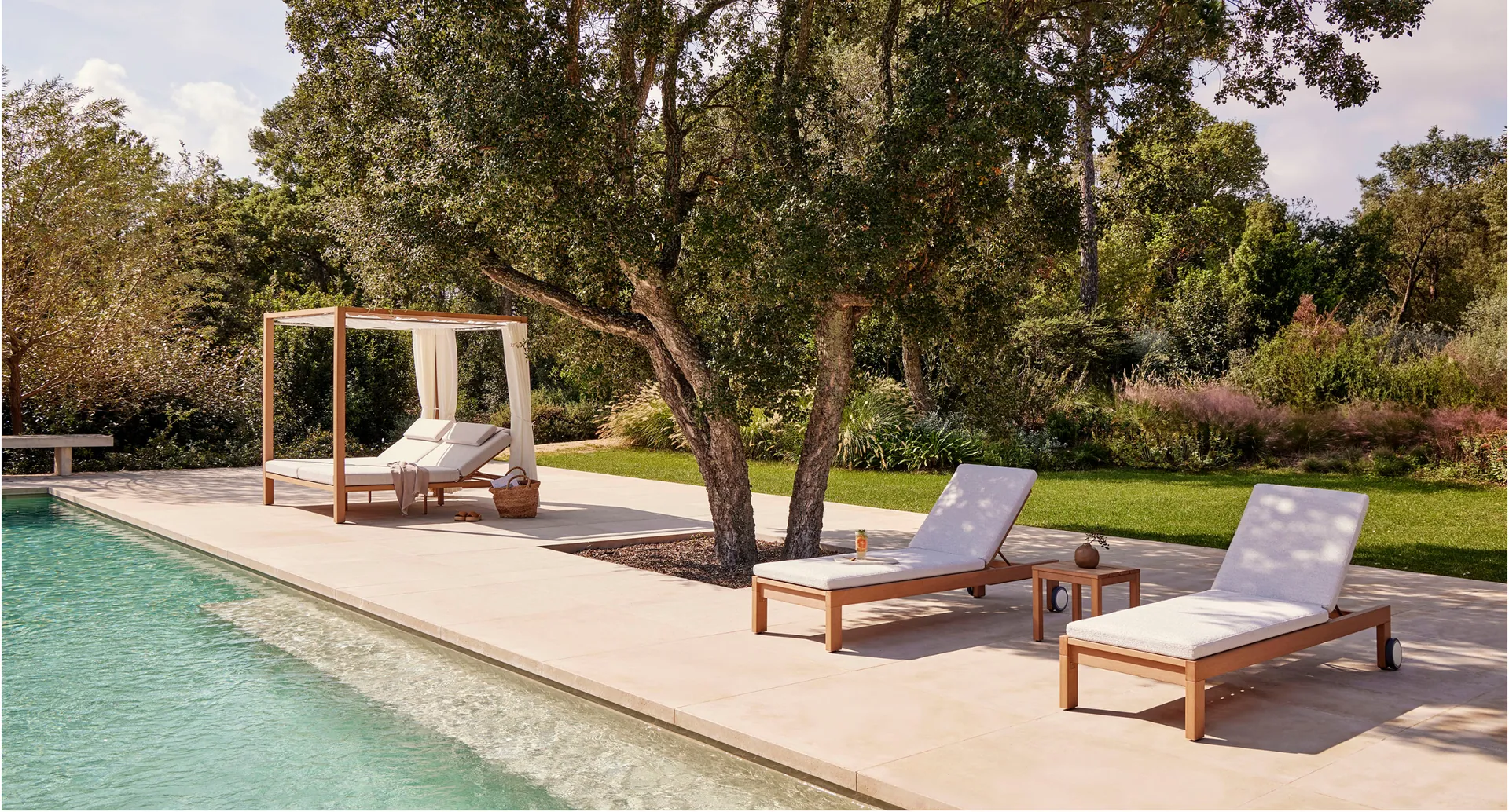 Diese Kollektion ist eine Hommage an die zeitlose Architektur- und Designvision von Louis Kahn, dem Meister klarer Linien und struktureller Einfachheit in der Architektur. Inspiriert von seinem Fokus auf Licht als zentrales Element bei der Gestaltung von Räumen haben wir eine Kollektion von Liegen und Beistelltischen entworfen, die die Essenz von Minimalismus und Funktionalität aufs Beste einfangen. Bei Kahn haben wir TechTeak verwendet, ein neues technologisches Teakholz, das das warme, natürliche Aussehen von Teakholz nachbilden kann, aber den entscheidenden Vorteil hat, dass es wartungsfrei ist. Jedes Stück der Kollektion ist so konzipiert, dass es den Anforderungen der anspruchsvollsten Objektprojekte standhält und eine ideale Lösung für Umgebungen bietet, die langlebige, hochwertige Möbel erfordern. Darüber hinaus ist es am Ende seines Lebenszyklus zu 100 % recycelbar, was unser Engagement für Nachhaltigkeit unterstreicht.