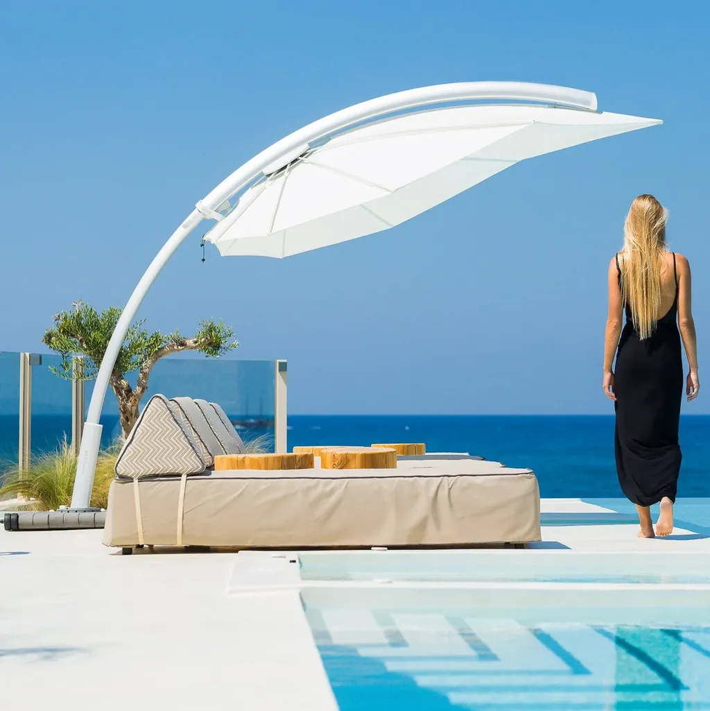 Rimbou aus der Kollektion Umbrosa Unter dem Namen Rimbou sammeln sich, wie Sie hier bei der Villa Schmidt entdecken können, verschiedene stilvolle Schirme aus dem Hause Umbrosa. Erleben Sie hier Icarus, Venus und Lotus. Allein beim Klang dieser Namen gerät man schon ins Träumen. Auch der Anblick dieser Schirme ist einfach traumhaft. Es erwarten Sie inspirierende Formen. Wenn Sie einen gewöhnlichen Schirm suchen, dann sind Sie hier nicht an der richtigen Adresse. Wenn Sie aber Ihre heimische Terrasse mit einem außergewöhnlichen Schattenspender verzieren wollen, dann sind Sie hier genau richtig. Die Natur war Vorbild bei den Rimbou-Schirmen: Der Lotus kommt in Form eines leicht geschwungenen Blattes daher. Auch das Venus-Sonnensegel schwingt sich natürlich elegant in die Lüfte und über Ihren Kopf. Der Icarus wurde vom Naturschauspiel des Verpuppens inspiriert und soll einen wunderbaren Rückzugsort schaffen. Bei den Rimbou-Schirmen haben Sie die Qual der Wahl. Ein Schirm interessanter und schöner als der andere. Echte Hingucker sind Sie alle, die Entscheidung für ein Modell ist allein eine Frage des persönlichen Geschmacks. Bei Umbrosa hat man diese wunderbaren Schirme bewusst unter dem Namen Rimbou versammelt. Dieser Ausdruck steht für den Bereich des Dschungels, der nur schwer zugänglich ist und in dem sich die Natur ungestört und frei entwickeln kann. Der natürliche Schatten, der in diesem Bereich entsteht, wird durch Icarus, Venus und Lotus nachgeahmt. Erfreuen Sie sich hier bei der Villa Schmidt an den eleganten Formen und Farben und finden Sie Ihren Favoriten. Vielleicht sorgt ja schon bald ein Rimbou-Schirm bei Ihnen daheim für ein natürliches und exklusives Ambiente in der schönsten Zeit des Jahres. Der Sommer kann kommen! Bei Fragen zu diesen oder anderen hochwertigen Outdoorprodukten rufen Sie uns einfach an. Ein kompetenter und freundlicher Mitarbeiter erklärt Ihnen alles und beantwortet gern Ihre Fragen.