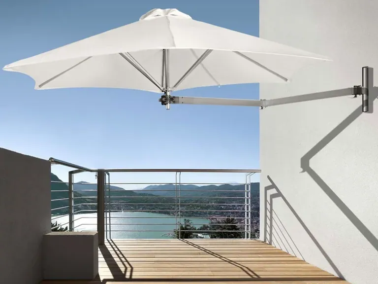 Die Macher von Umbrosa sind bekannt für ihre kreativen Schirme abseits gewöhnlicher Formen. Hier präsentiert sich mit dem Paraflex ein weiterer Schirm in dieser Tradition. Flexibel, dynamisch und eine wahre Augenweide. Nehmen Sie sich hier bei der Villa Schmidt ein paar Minuten Zeit, um diesen Schirm auf sich wirken zu lassen. Stellen Sie sich vor, wie dieses schöne Exemplar an einem herrlichen Sommertag elegant über Ihrem Kopf schwebt, während Sie ein gutes Buch oder ein erfrischendes Getränk genießen. Der Designer Peter Leleu hat einen Schirm kreiert, der Ihnen dank seines flexiblen Arms ein wunderbares Schattenerlebnis beschert, wo auch immer die Sonne gerade steht. Ein Arm war denn auch tatsächlich das Vorbild beim Entwerfen dieses kleinen Kunstwerkes aus dem Hause Umbrosa. Auch wenn es um die Art der Befestigung geht, zeigt sich der Paraflex flexibel. Er lässt sich unter anderem an der Wand befestigen oder an einem Rohr aus hochwertigem Aluminium. Entscheiden Sie sich hier bei der Villa Schmidt für die individuell passende Variante. In jedem Fall können Sie den Schattenplatz unter dem Schirm voll und ganz ausnutzen, da sich dort direkt kein störender Mast befindet. Wenn Sie von so stilvoll kreiertem Schatten nicht genug bekommen können, dann können Sie sich hier bei der Villa Schmidt auch für den Duoflex entscheiden, der gleich mit zwei Schirmdächern daherkommt. Dies ist nicht nur daheim auf einer großen Terrasse praktisch, sondern macht sich auch vor Lokalen ausgezeichnet und sorgt gewiss für staunende Augen bei den Gästen. Kommen Sie dynamisch und flexibel durch die schönste Zeit des Jahres mit dem Paraflex von Umbrosa.