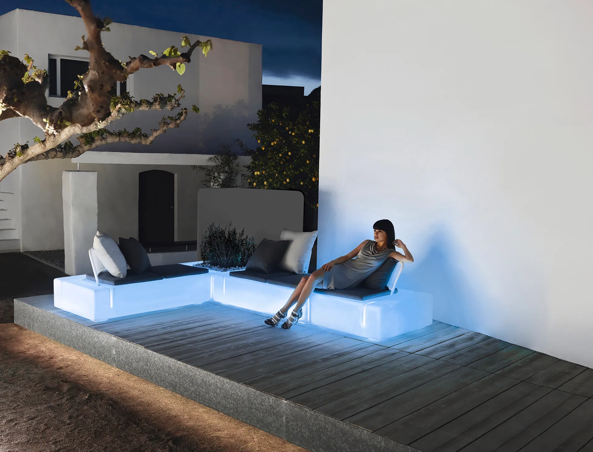 Die Vondom Kes Kollektion besteht aus verschiedenen Modulen, die zur Bildung von einer modernen Loungegruppe im Außenbereich genutzt werden können, aber auch für Innenräume gut geeignet sind. Das geradlinige Design mit eleganten Formen, die aus thermoplastischem Kunststoff und Edelstahl hergestellt sind macht Kes besonders markant in jeder Umgebung. KES is a modular system seating for furnishing outdoor spaces. The main objective is to create endless and articulated compositions; sofas, chaise and lineal and angular poufs. Armchairs formed by individual elements or large islands as a results of the union of several parts. The most characteristic of this collection is the visible cut in the basic volume, as a kind binary and include additional elements such as backups, armrest and table. The cut becomes architectural, decorative and functional symbol characterized as distintive and functional, simple but also complex, valuable for the product. Buratti + Battiston Architects base their work on looking for a new interpretation of the relationship between simplicity and complexity, finding the balance, giving it an original value. Flexibility in the composition an the mobility of elements make it easy the optimum confort position.